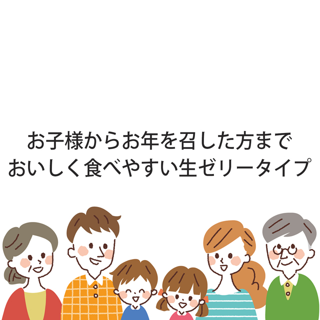 お子様からお年を召した方までおいしく食べやすい生ゼリータイプ。